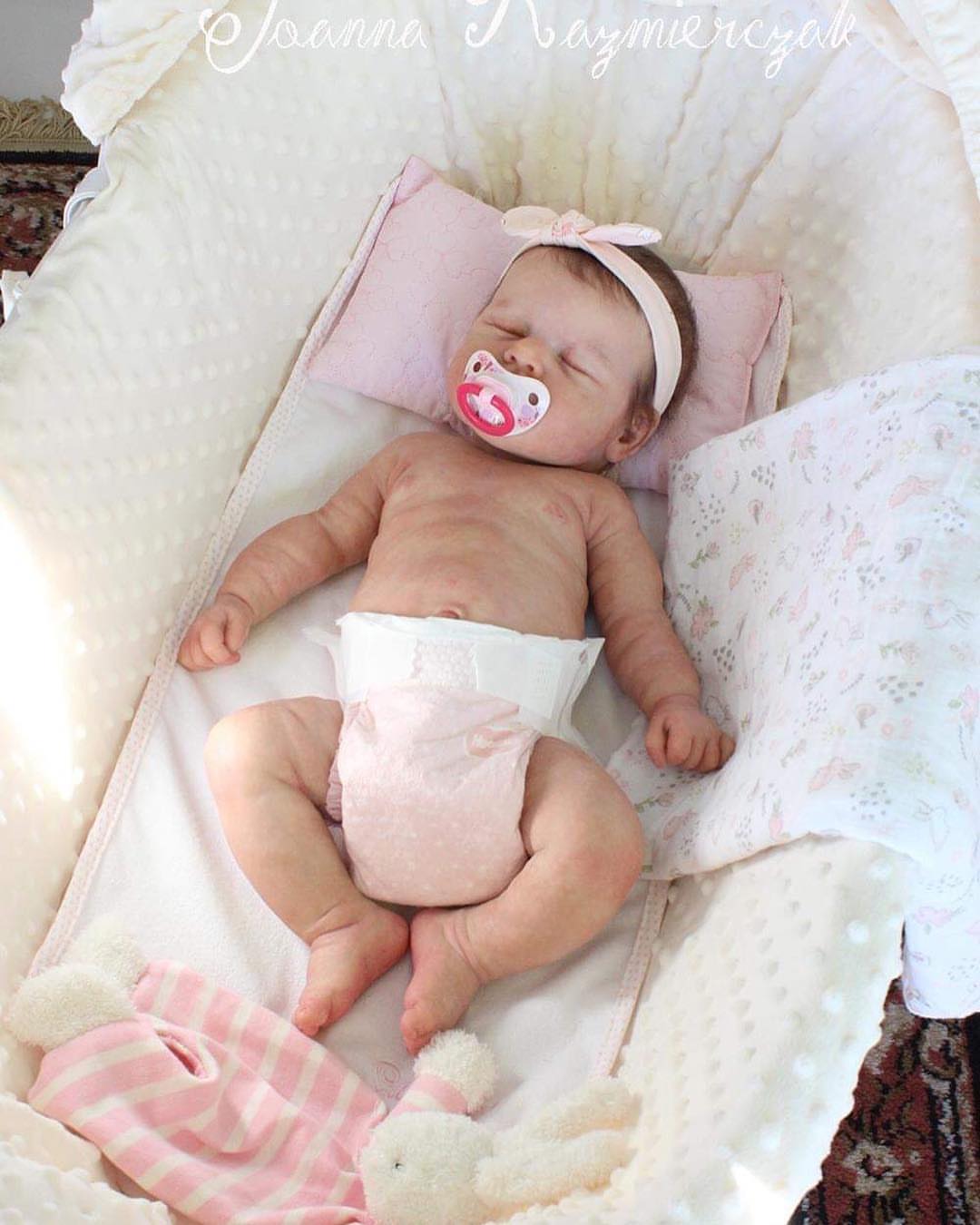 What makes Baby Loulou truly special? She’s been lovingly bathed, dressed, and cared for just like a real newborn. The images you’ll see showcase her versatility and realistic nature – whether being bathed, cuddled, or peacefully sleeping. This unique baby girl deserves all the love and attention for being so beautifully crafted and extraordinarily lifelike.